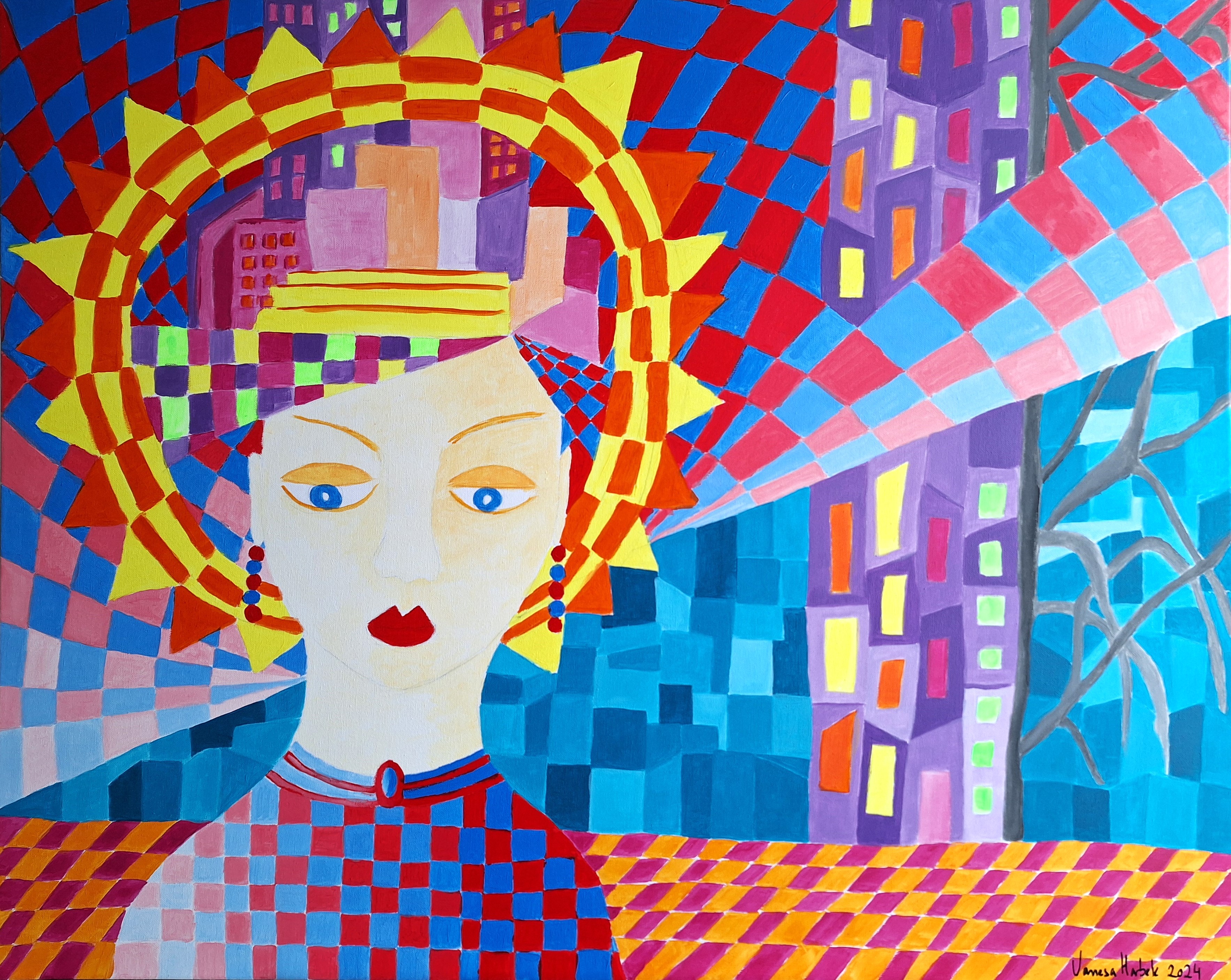„Die Inspiration meiner Bilder hat ihren Ursprung in der Musik und meiner Gefühlswelt. Es geht um die Interaktion von Farbe mit Klang. Wenn ich male, höre ich Musik und wenn ich musiziere oder komponiere, stelle ich mir Farben vor. Beim Malen tauche ich ab, ich male gerne imaginäre Welten, innere Landschaften, Blicke, Blicke von jemand anderem und von anderen, das Zusammenspiel zwischen diesen Blicken und den phantastischen Landschaften. Beobachten und beobachtet werden, auf einer Bühne und auf anderen Szenarien. Mittels eines Bildes das Nicht- Wahrnehmbare sichtbar zu machen, das in manchen Augen versteckt liegt..."